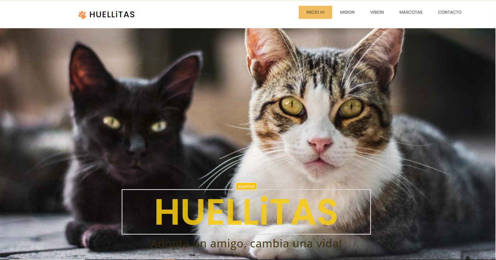 Welcome to Huellitas – your dog and cat adoption website! This project was developed as part of my training at Intecap, with the goal of creating a simple and user-friendly platform, ready to be used by anyone ready to help.